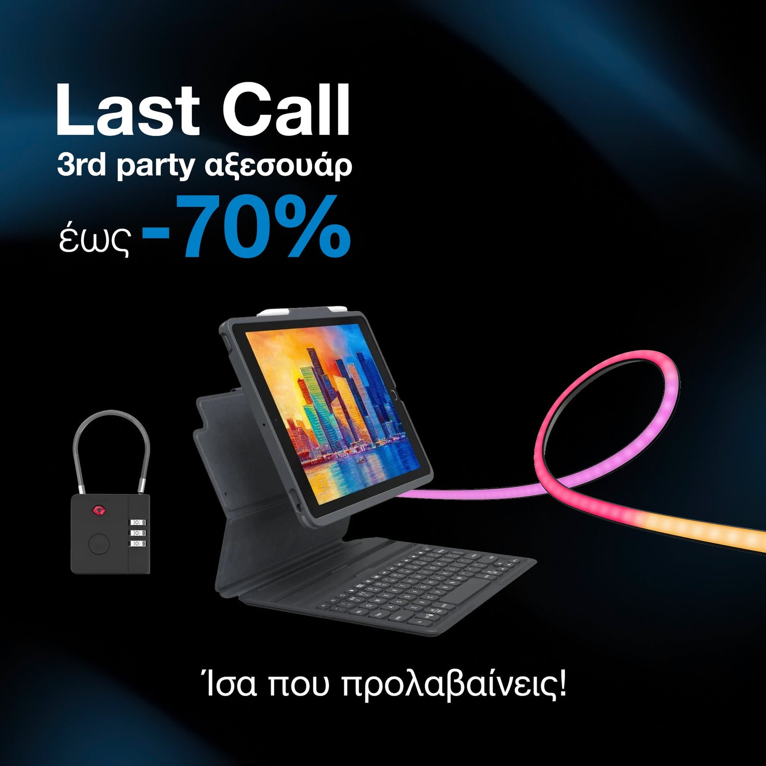 Last Call Accessories: Οι προσφορές για τα last call 3rd party accessories είναι μέχρι εξαντλήσεως των αποθεμάτων. Το ακριβές μέγιστο ποσοστό έκπτωσης είναι 68%.