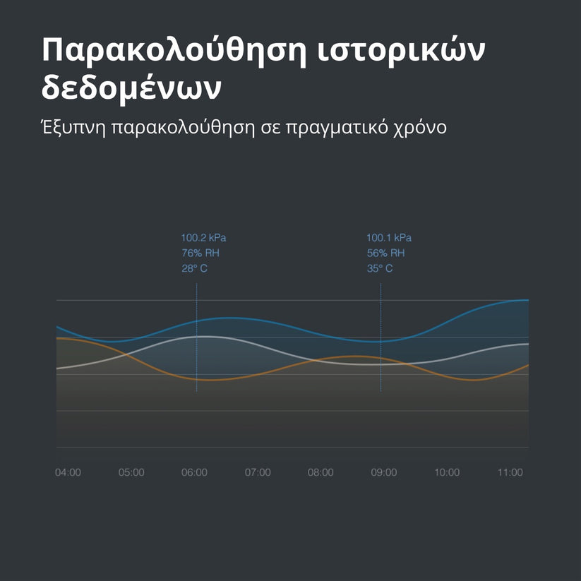 - Καταγραφή Δεδομένων: Ο αισθητήρας καταγράφει δεδομένα σε πραγματικό χρόνο, αποθηκευμένα στο cloud, επιτρέποντας την πρόσβαση σε ιστορικά δεδομένα χωρίς συνδρομές.