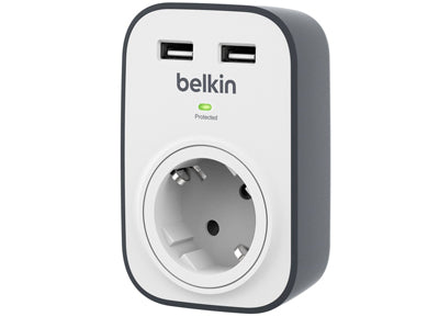 Μονόπριζο ασφαλείας απο την Belkin με 2 θύρες USB για την προστασία των ηλεκτρικών και ηλεκτρονικών συσκευών σου απο διάφορες ηλεκτρικές διαταραχές.