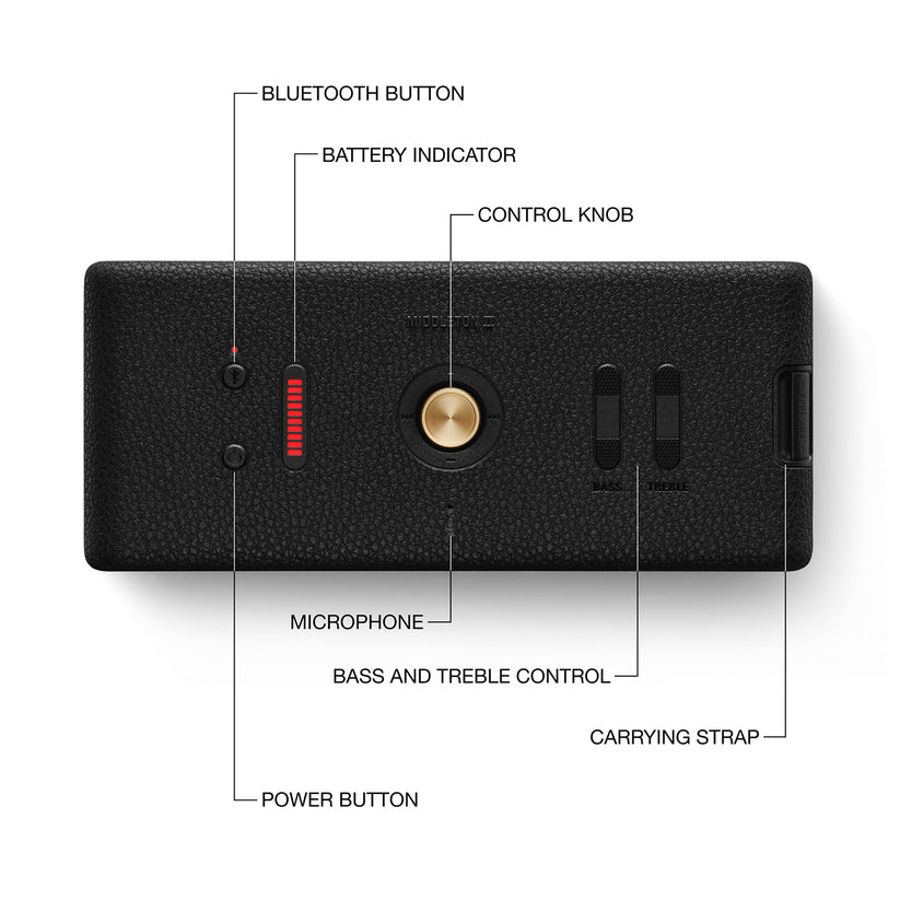 Φτιαγμένο για όσους δεν κάνουν πίσω σε στιλ και ήχο, το Marshall Middleton II είναι ένα φορητό bluetooth ηχείο που παίρνει σοβαρά τη μουσική. Με χαρακτηριστική εμφάνιση εμπνευσμένη από τους κλασικούς ενισχυτές της Marshall, προσφέρει μια εμπειρία ακρόασης που είναι εξίσου ουσιαστική όσο και εμβληματική. Με ισχύ 60W από δύο woofer 3” και δύο tweeter 0,6”, το Middleton II γεμίζει τον χώρο με δυνατό, γεμάτο σώμα ήχο, χωρίς να πιέζεται στις υψηλές εντάσεις. Η τεχνολογία True Stereophonic προσφέρει πραγματικό πολυκατευθυντικό ήχο 360°, έτσι δεν έχει σημασία πού στέκεσαι – η εμπειρία παραμένει σταθερά ισορροπημένη και δυναμική. Η μπαταρία του κρατάει πάνω από 30 ώρες συνεχούς αναπαραγωγής, και μια γρήγορη φόρτιση 20 λεπτών σου δίνει περισσότερες από 2 ώρες χρήσης. Η πλήρης φόρτιση ολοκληρώνεται σε περίπου 4,5 ώρες μέσω USB-C. Το ίδιο το ηχείο λειτουργεί και ως powerbank, ώστε να φορτίζεις άλλες συσκευές εν κινήσει χωρίς να θυσιάζεις τη μουσική.