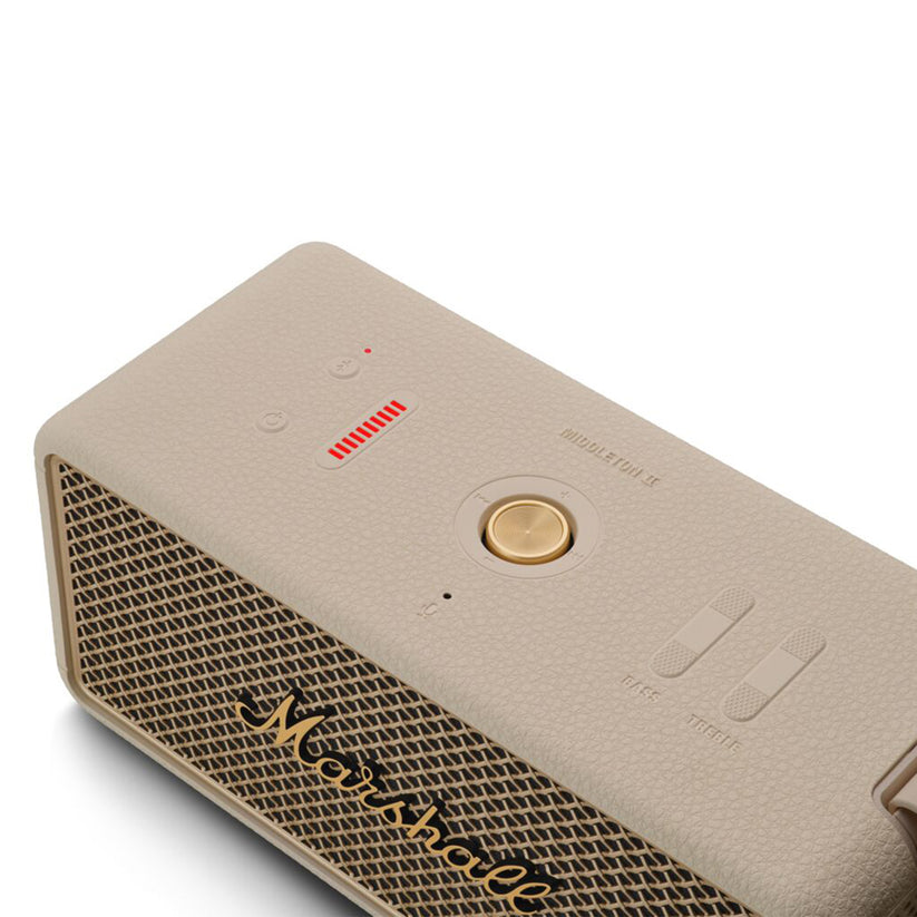 Αν όμως θες να μπεις πιο βαθιά στις ρυθμίσεις ή να κάνεις firmware updates, υπάρχει και η εφαρμογή Marshall Bluetooth. Με Bluetooth 5.3 και υποστήριξη για LE Audio (μέσω μελλοντικού update), η σύνδεση είναι σταθερή, γρήγορη και πιο αποδοτική ενεργειακά, με καλύτερη ποιότητα ήχου όταν συνδεθεί με συμβατές συσκευές. Υπάρχει επίσης υποδοχή USB-C για φόρτιση και έξοδο powerbank, και θύρα 3.5mm για σύνδεση με αναλογικές πηγές ήχου. Το Marshall Middleton II δεν είναι ένα ακόμα φορητό ηχείο. Είναι ένα compact ηχοσύστημα με χαρακτήρα, διάρκεια, ισορροπία και στΙλ, σχεδιασμένο να σε συνοδεύει παντού – από την παραλία και το πάρκο μέχρι το σαλόνι σου. Χωράει στην τσάντα σου αλλά παίζει σαν να γεμίζει μια μουσική σκηνή.