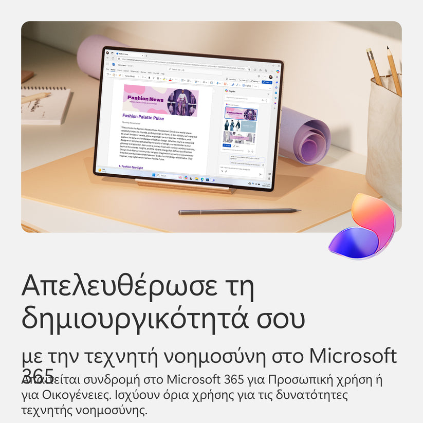 5Απαιτείται συνδρομή στο Microsoft 365 για Προσωπική χρήση ή για Οικογένειες. Οι δυνατότητες τεχνητής νοημοσύνης είναι διαθέσιμες μόνο στον κάτοχο της συνδρομής και δεν είναι δυνατή η κοινή χρήση. Ισχύουν όρια χρήσης. Μάθετε περισσότερα