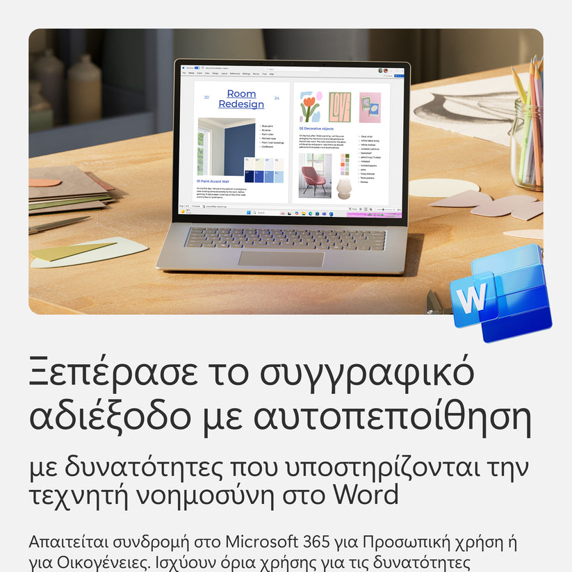 - Εφαρμογές Word, Excel2, PowerPoint, Outlook3 και OneNote για υπολογιστή με το Microsoft Copilot.4