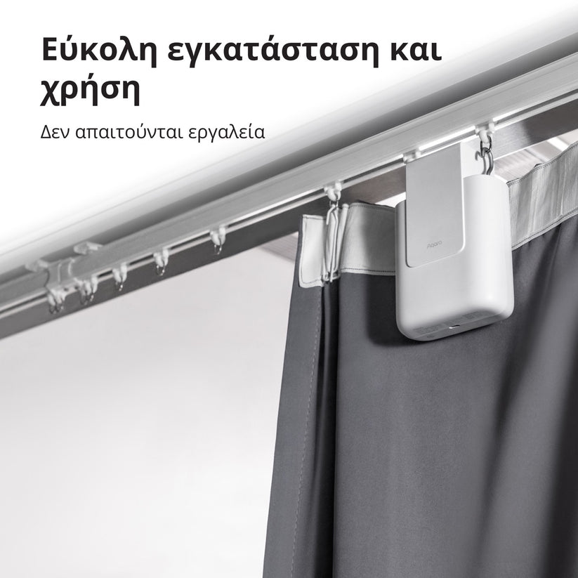 Εύκολη Εγκατάσταση: Η εγκατάσταση είναι πολύ γρήγορη και δεν απαιτεί επιπλέον εργαλεία: το Curtain Driver μπορεί απλά να τοποθετηθεί στις υπάρχουσες ράγες κουρτίνας.