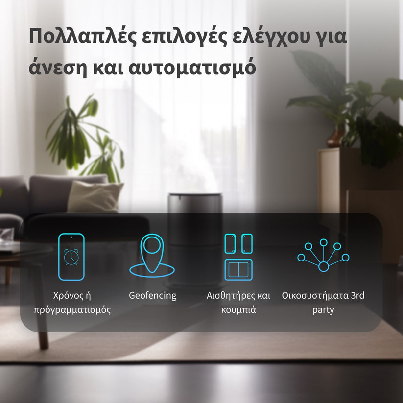Υποστήριξη Apple Home και Matter over Bridge*: Το T2 είναι συμβατό με Apple Home, Matter, Google Home και Amazon Alexa. Μετατρέπει τις παραδοσιακές συσκευές σε έξυπνες και ενσωματώνεται απρόσκοπτα με πολλά συστήματα τρίτων. Αυτό διευκολύνει την αυτοματοποιημένη ρύθμιση και τη σύνδεση με άλλα συμβατά προϊόντα, προσφέροντας μια ευέλικτη και φιλική προς τον χρήστη εμπειρία.